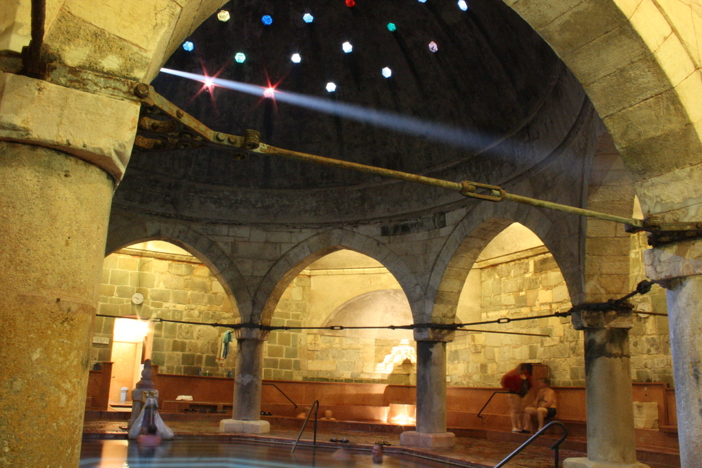 館内にはルダシュ温泉と同様のトルコ風呂があり、ほとんどそれだけのシンプルな構成。お客さんはそこそこ来ている。水温は36度くらいで、ぬるめだが長居しやすい。浴槽の中央にはお湯の吹き出し口が4つあり、滝行のように体を当てている人もいた。のんびり1時間ほど入浴。かなり待ったこともあり、人は多かったがルダシュ温泉に比べると静かで過ごしやすかった。