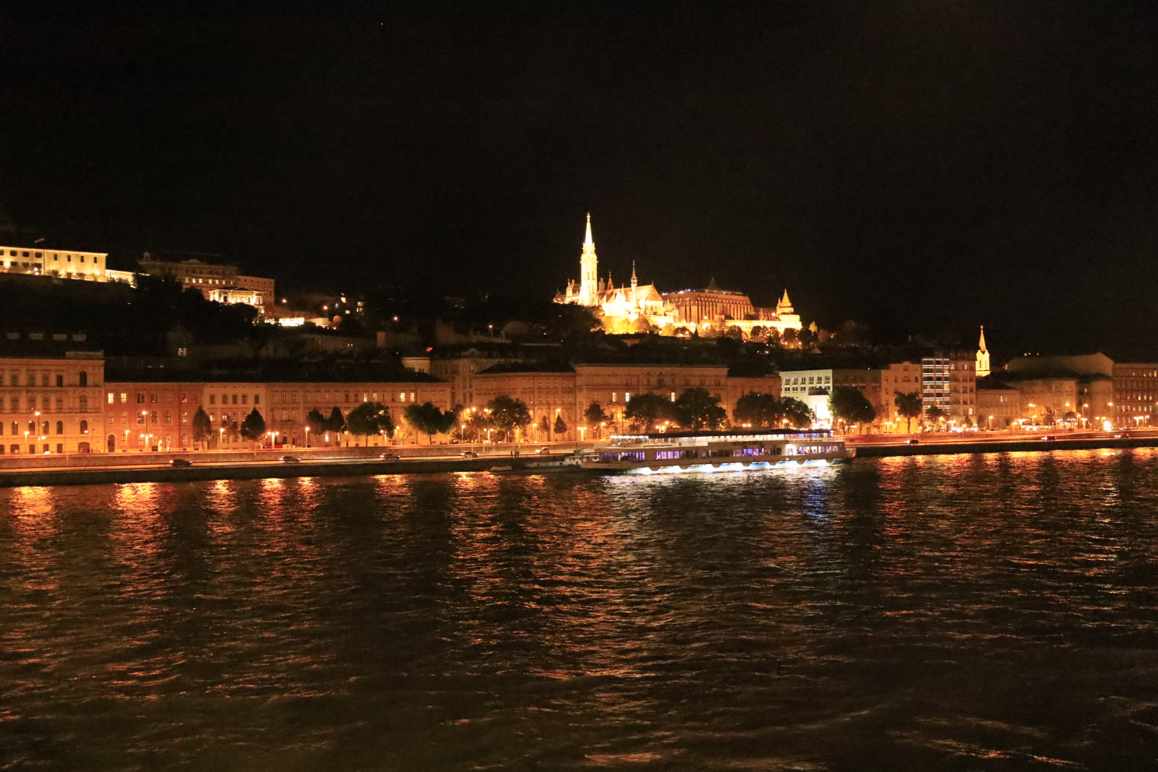 国会議事堂が照らされていないとなると、ここからの眺めよりも、橋のあたりから対岸の王宮や漁夫の砦の方を眺める方が夜景として映えていた。夜になって橋の形状が非常に夜景と相性が良いと実感できたし、ただ明るいだけではなく、品のあるライトアップであり、世界的に評価される夜景の美しさを十分に味わえたと思う。