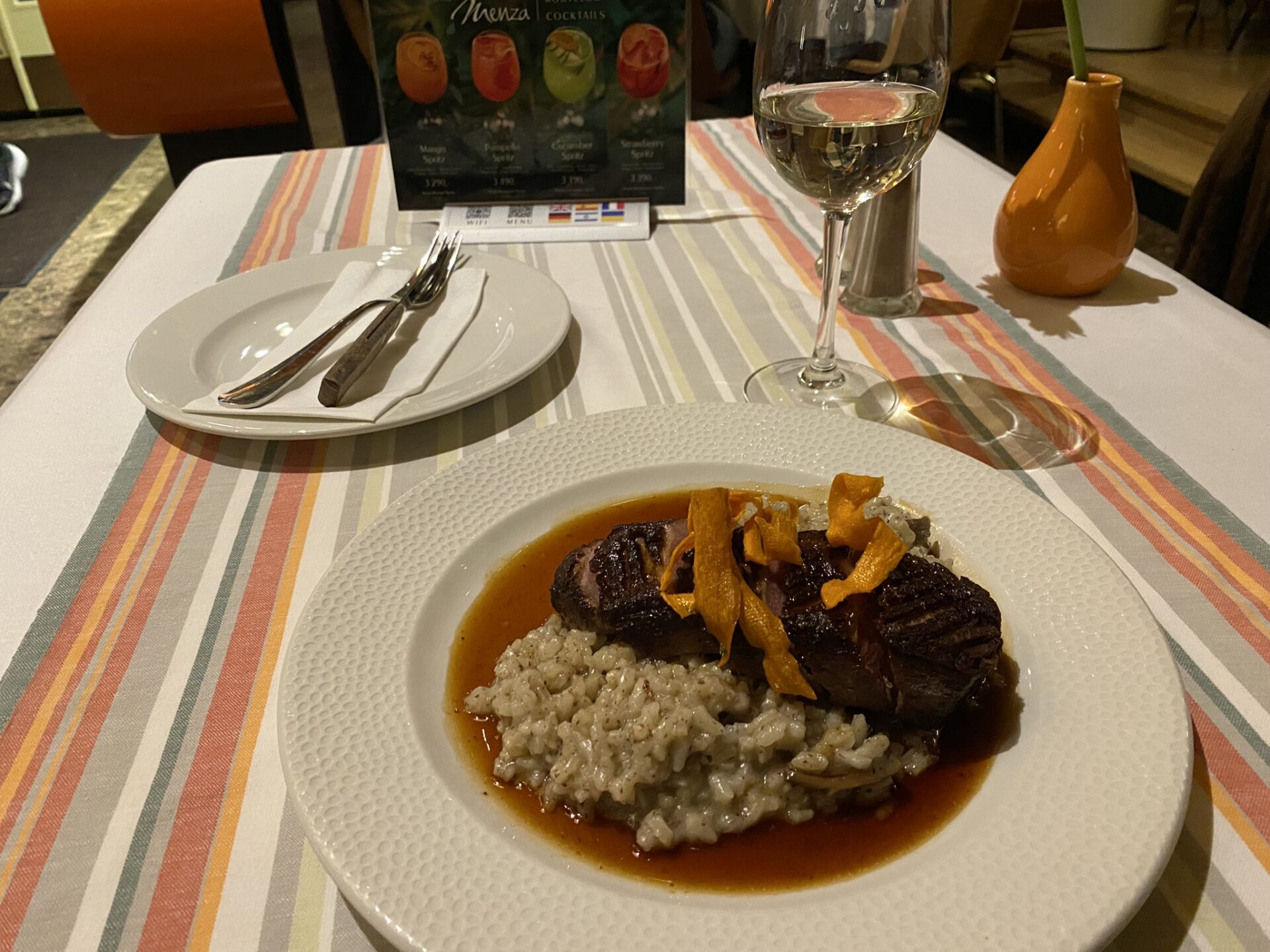 気になるその味だが、非常に美味だった。キノコとチーズのうまみが十二分にしみ込んだリゾットと鴨肉の相性が抜群。鴨肉は少し硬めだが、うまみが非常に強い。とにかくうまみ成分が強い食材がそれぞれ主張してくるので、パンチがあって好きだった。寄ってよかった。この旅行の食事ランキングでいえば、マンガリッツァ豚のステーキと僅差だが暫定1位をあげたい。
