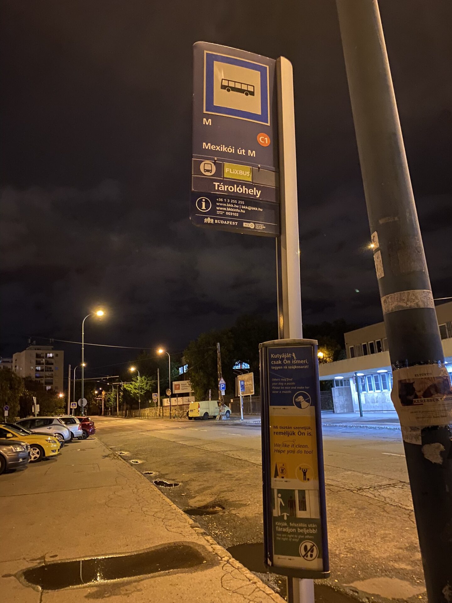途中、セーチェーニ温泉や英雄広場があるシティパーク(Városliget)を通り過ぎると間もなくバス停。このあたりが特に暗くて、地下道のような場所を通る必要もあったので少し怖かった。