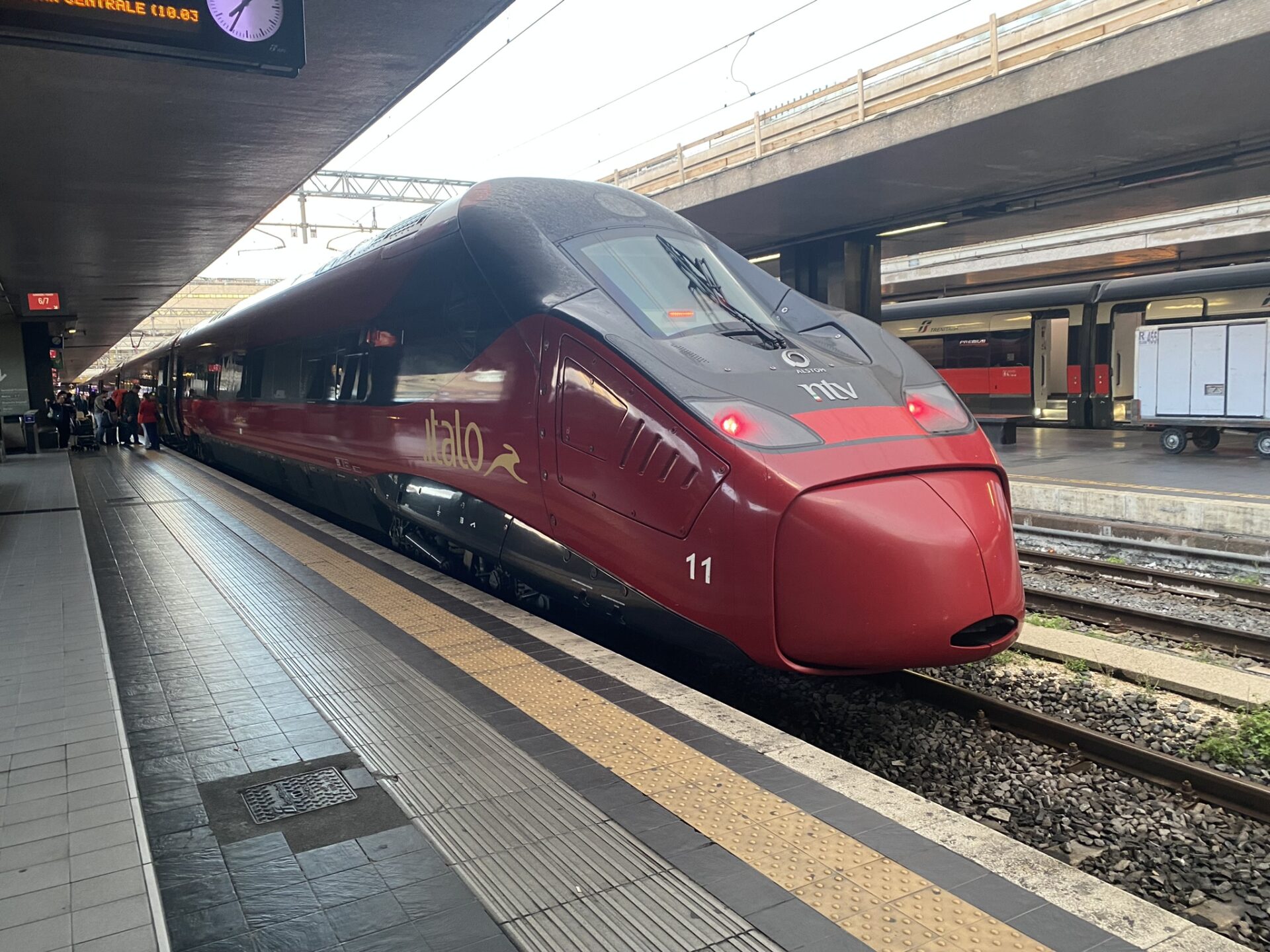 ローマ・テルミニ駅から高速鉄道Italoに乗ってフィレンツェへ移動。約1時間半の快適な車内で、前日までのローマの喧騒を振り返りつつ、次の都市への期待が高まる。
