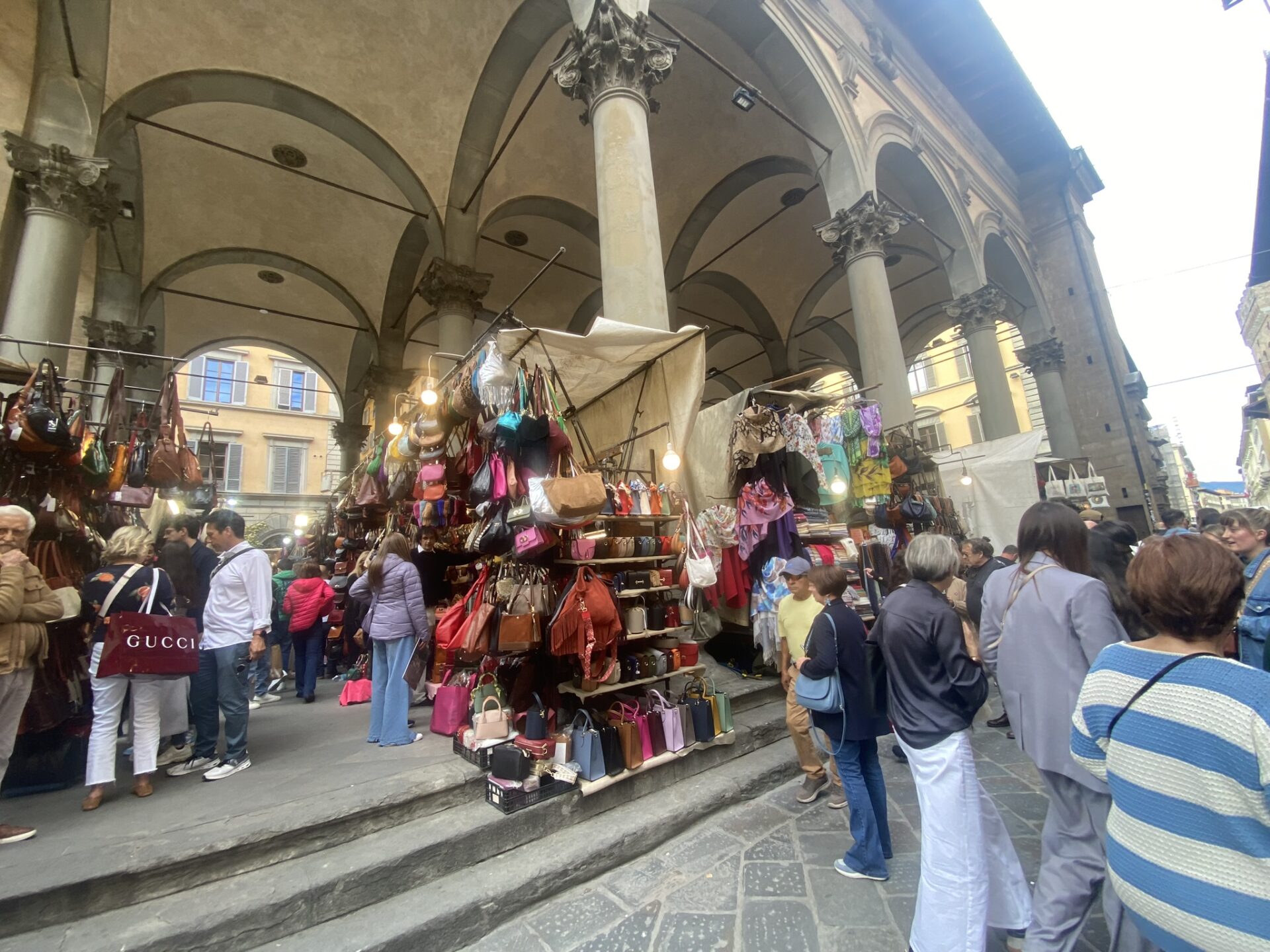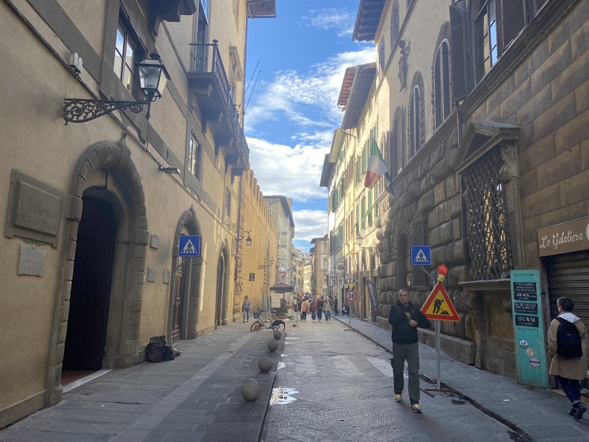 途中、15世紀のルネサンス建築「メディチ・リッカルディ宮殿」や、フィレンツェ市庁舎として使われている「ヴェッキオ宮殿」の外観も目にする。どちらもメディチ家の権力と美意識を象徴する建築で、街の歴史的深みを感じさせる。