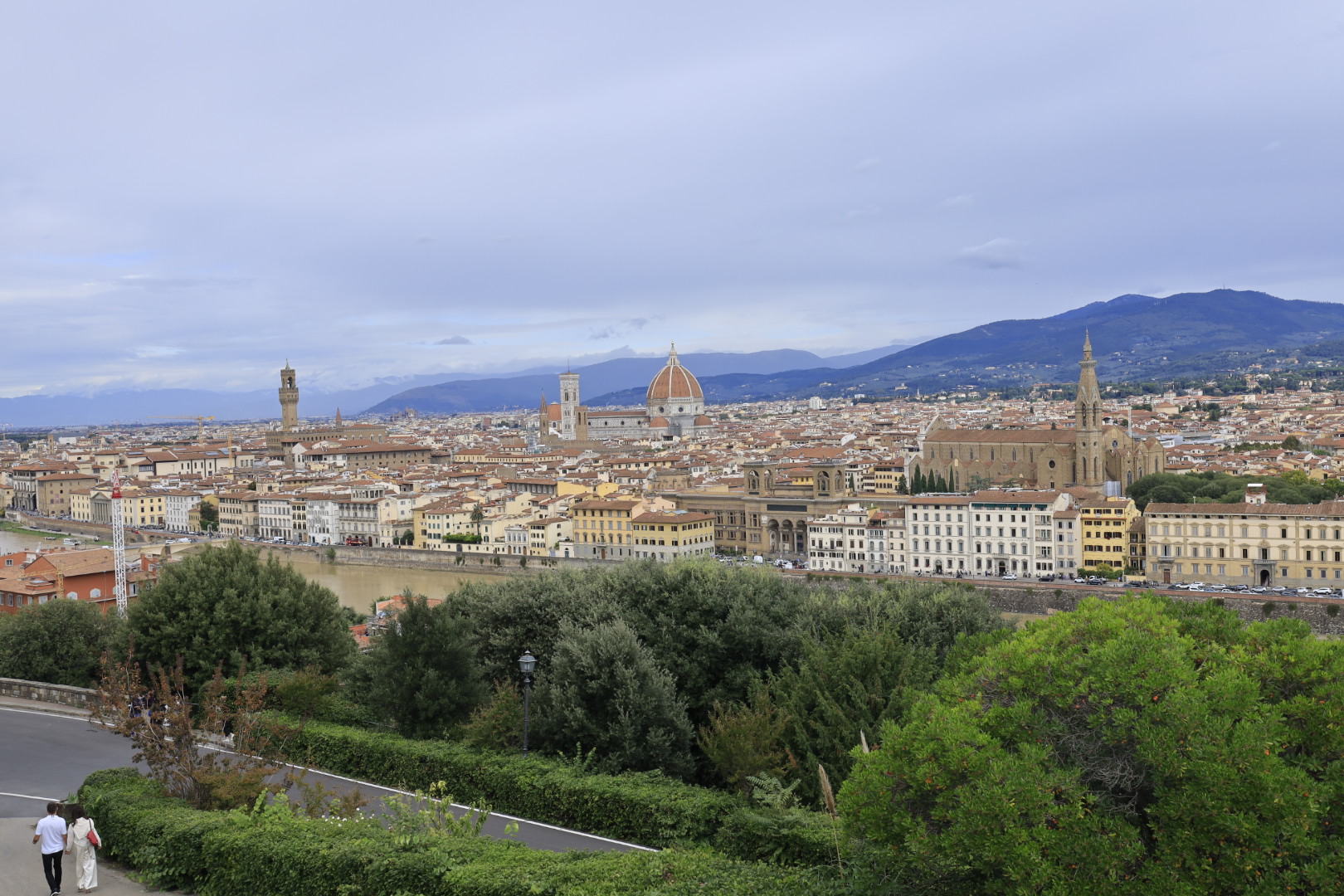 フィレンツェの街を一望できる展望スポット。19世紀に造られた広場で、中央にはミケランジェロの「ダビデ像」のブロンズ製レプリカが立つ。徒歩でもアクセス可能だが、坂道が続くため体力的にはやや厳しい。