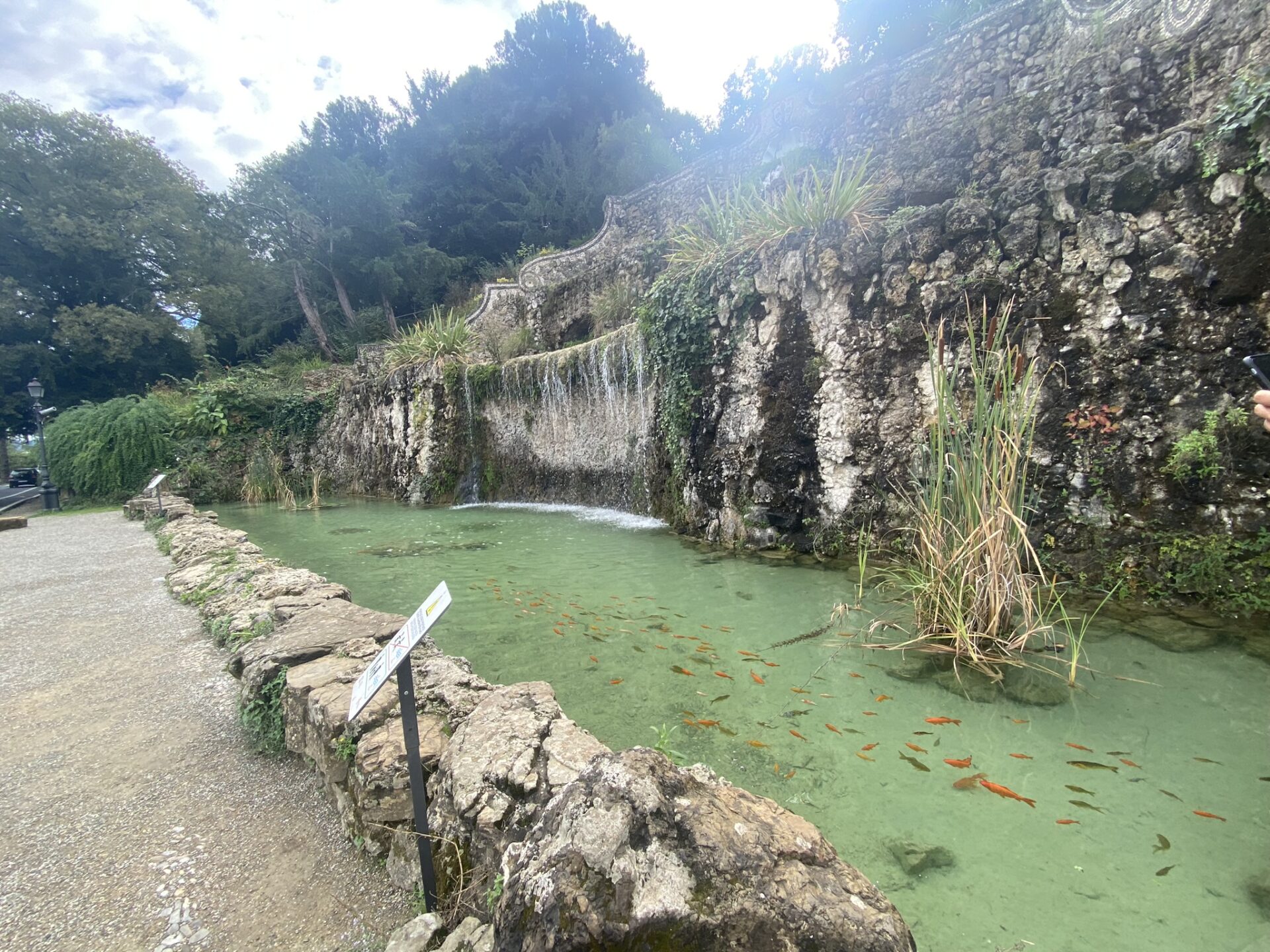 道中には小さな水場があり、魚が泳ぐ姿も見られる。川の向こう側に見える街並みは黄色やクリーム色の壁に茶色い屋根が並び、まるでティラミスのようなカラーリング。統一感があり、遠くからでも街の象徴である「ドゥオモ」がはっきりと見える。明日見る予定の本物のダビデ像への期待が高まる。