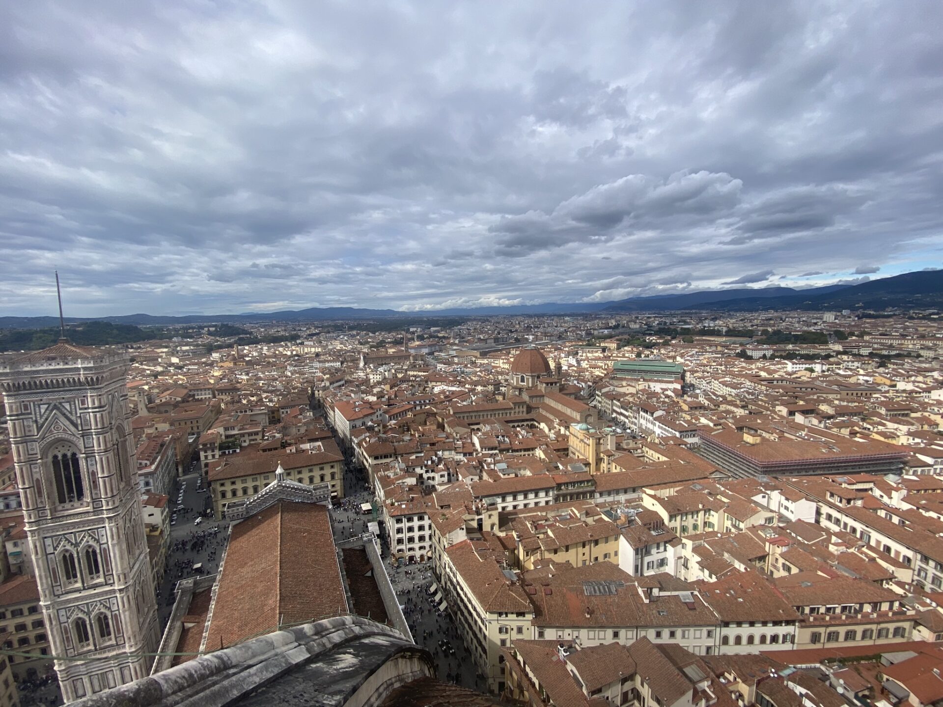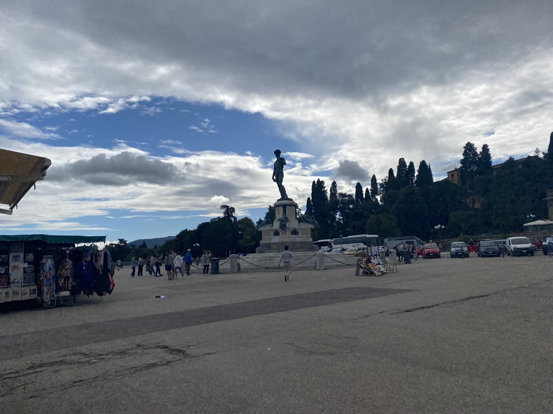 10:00にフィレンツェ到着。宿に荷物を預けると、ホステルとは思えないほど立派な受付と清潔感のある内装に驚く。街歩きの準備を整え、まずはミケランジェロ広場を目指す。