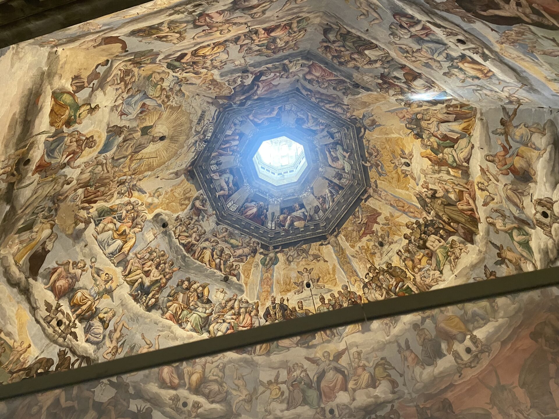 内部では、天井に描かれた「最後の審判」を間近で見ることができるが、立ち止まるとスタッフに注意される。階段を上ると途中の部屋で彫刻の像がたくさんいる部屋を通る。屋上からの景色は非常に美しく、フィレンツェの街並みを一望できる。