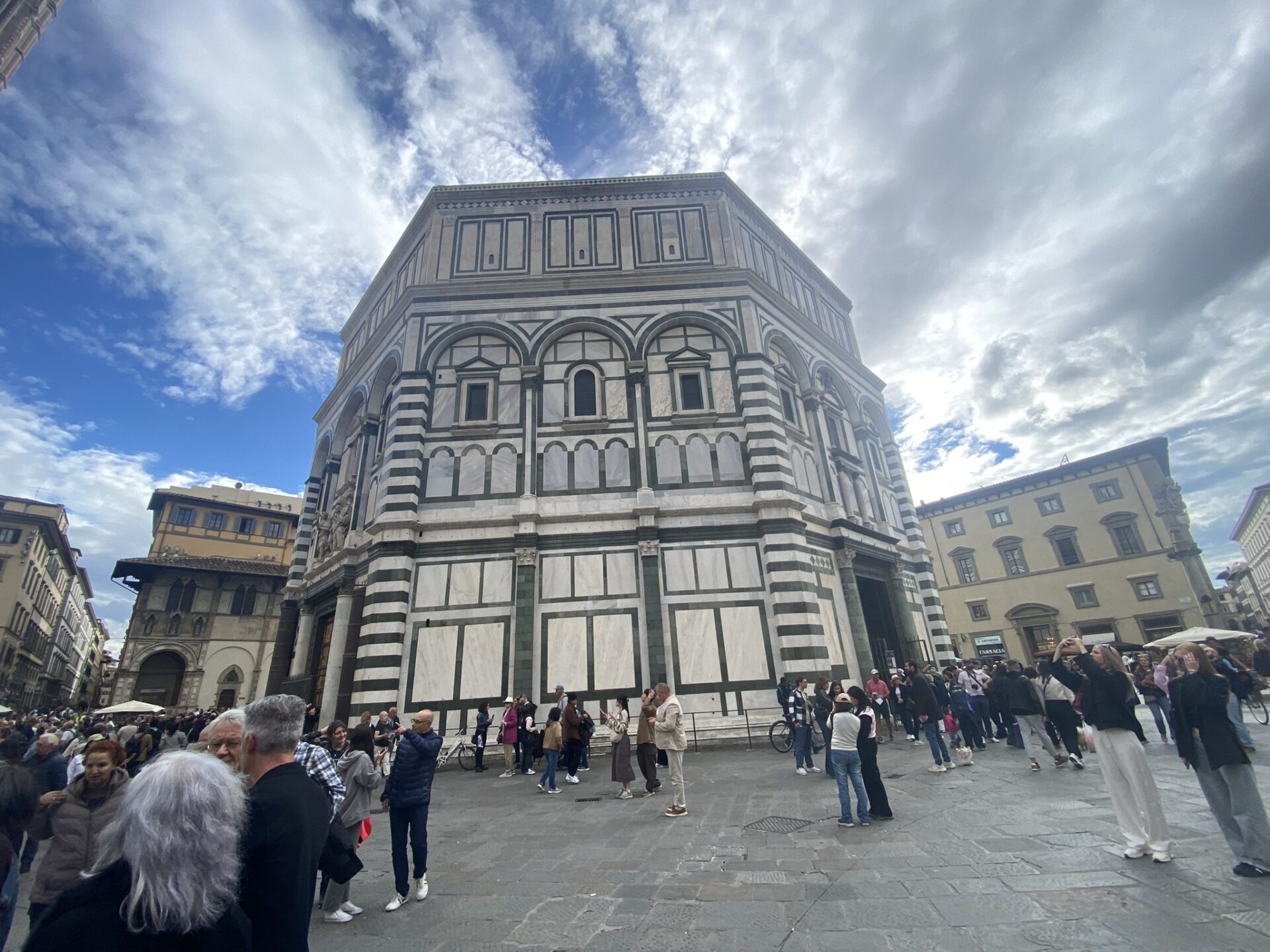 ドゥオモの正面に位置する八角形の建物で、フィレンツェ最古の宗教施設のひとつ。内部にはモザイク天井が広がり、キリスト教の物語が描かれている。今回はドゥオモのチケットに含まれていたため見学。