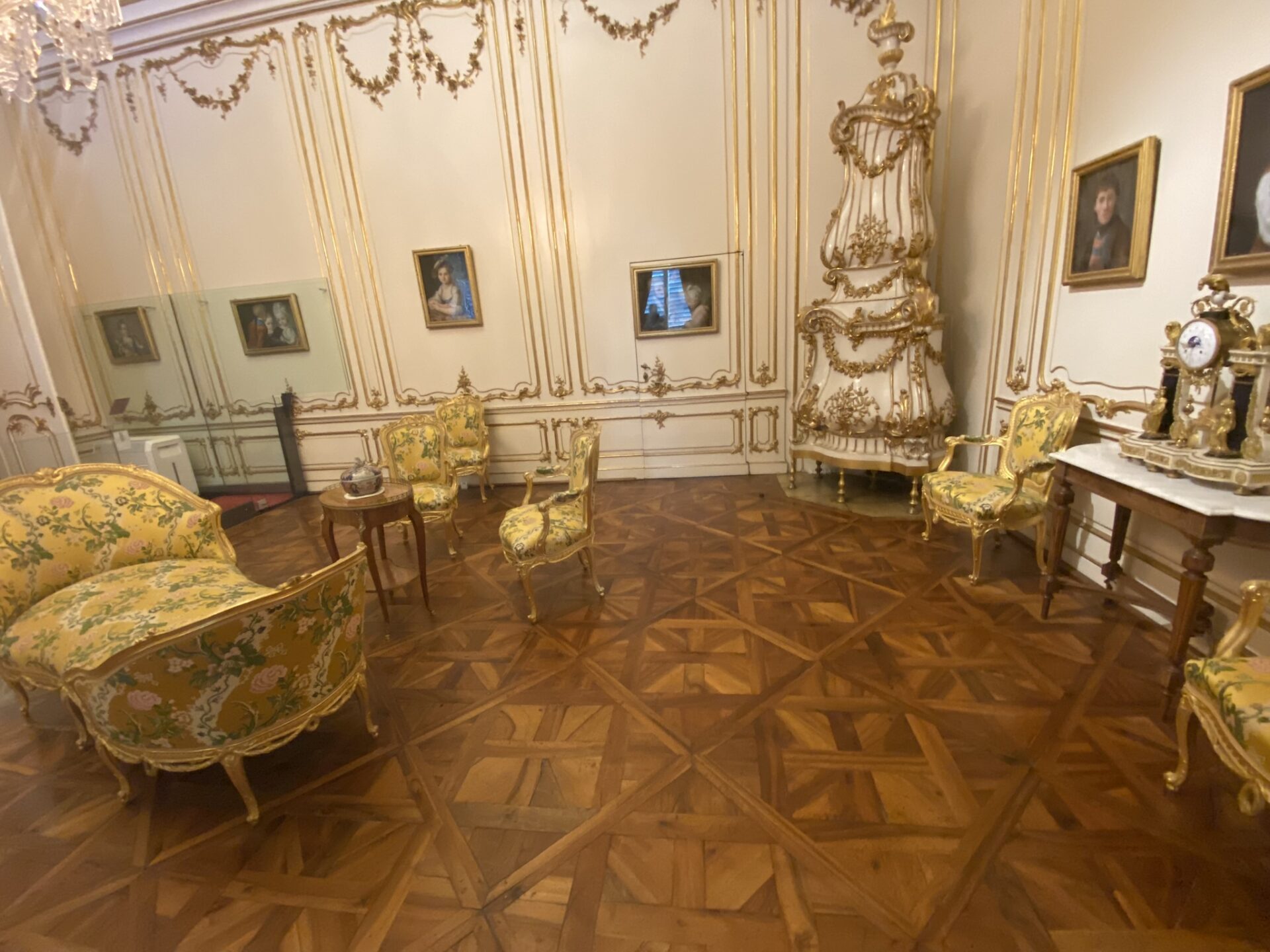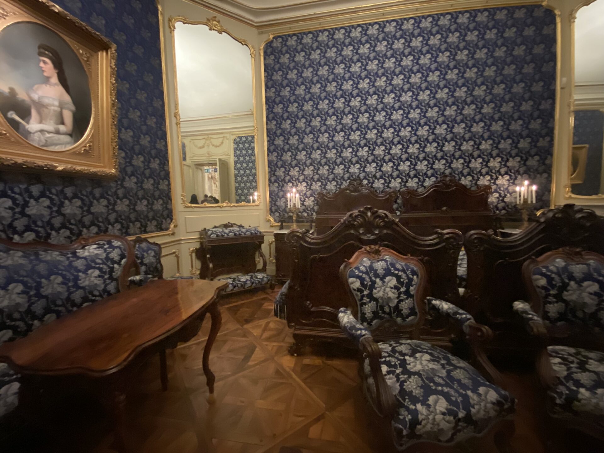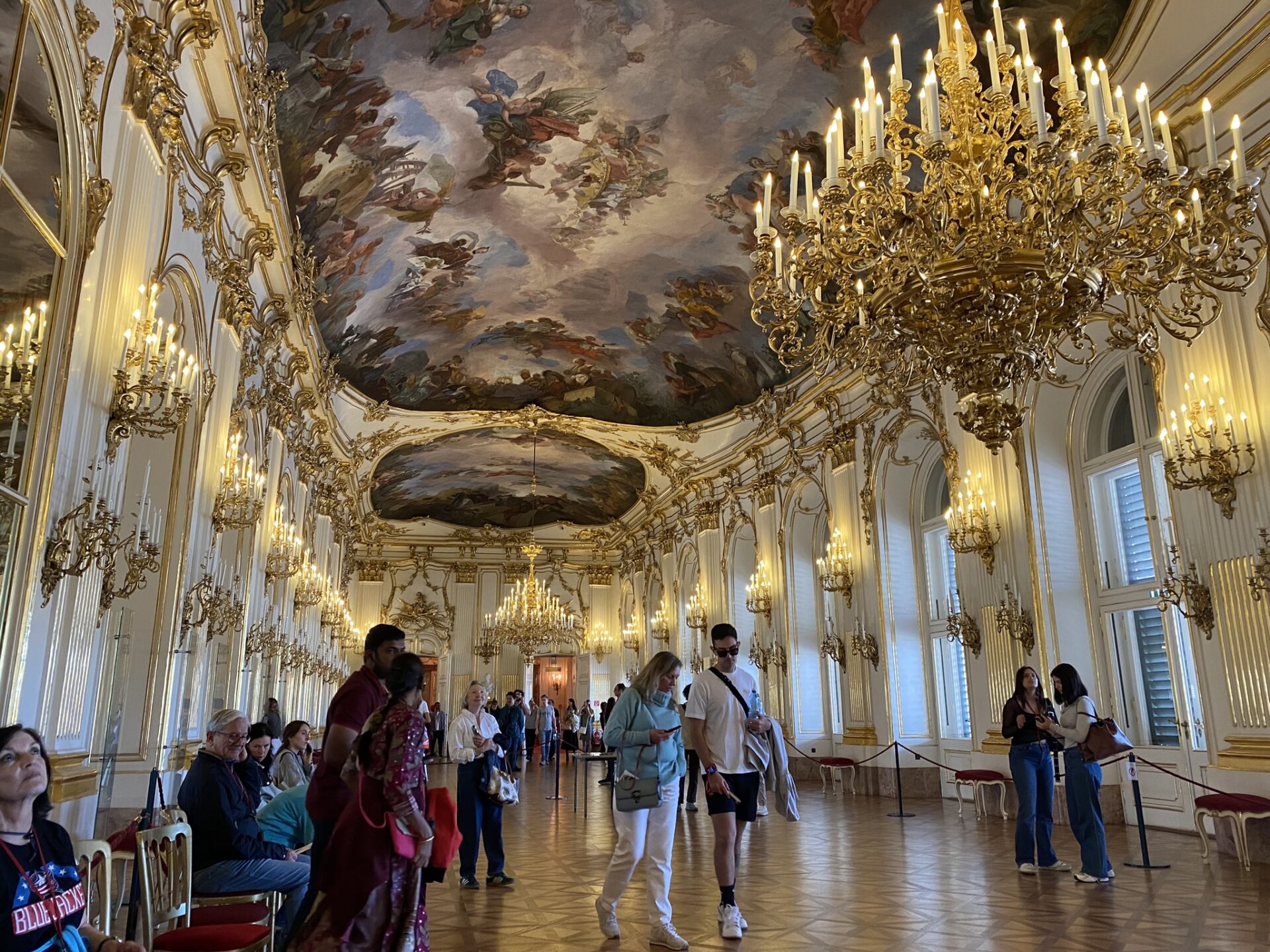 内装で印象的なのはやはりグレートギャラリー(Große Galerie)。宮殿の中でも最も壮麗な空間。長さ40メートルを超える大広間で、天井画には神話的な場面が描かれ、金の装飾とシャンデリアが豪華さを際立たせている。舞踏会や晩餐会が開かれていたというのも納得の華やかさだった。その他にもモーツァルトが6歳の時に演奏したとされる鏡の間や応接室、寝室、遊技場や、食事場など魅力的な部屋が多くある。内装は壮大な鏡の間を有するヴェルサイユ宮殿には及ばないが、外観はシェーンブルンの方が好みだと感じた。