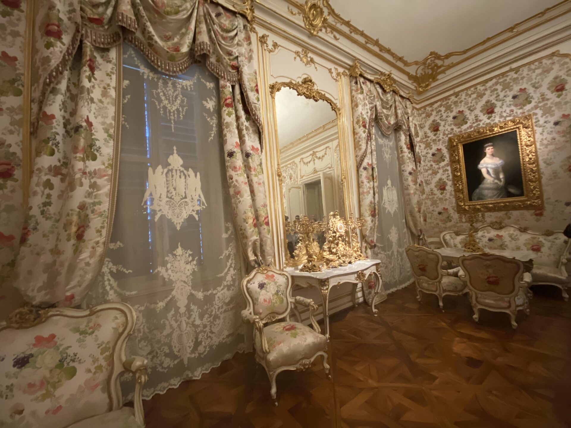 当時「State Apartments」は現地の券売機でしか買えなかったが、今ではオンライン購入も可能。混雑していると聞いていたが、自動券売機が多数設置されており、観光客は多かったものの昼間でもほとんど待たずに購入できた。また、建物内は写真撮影禁止という情報もあったが、2024年2月からは撮影が解禁されたらしい。このように、とても有名な観光地なのだがシステムや料金が変わりすぎて正確な情報が手に入りにくいと思った。こうした情報は公式サイトよりも、Googleマップの最近のレビューを見る方がわかりやすくておすすめ。