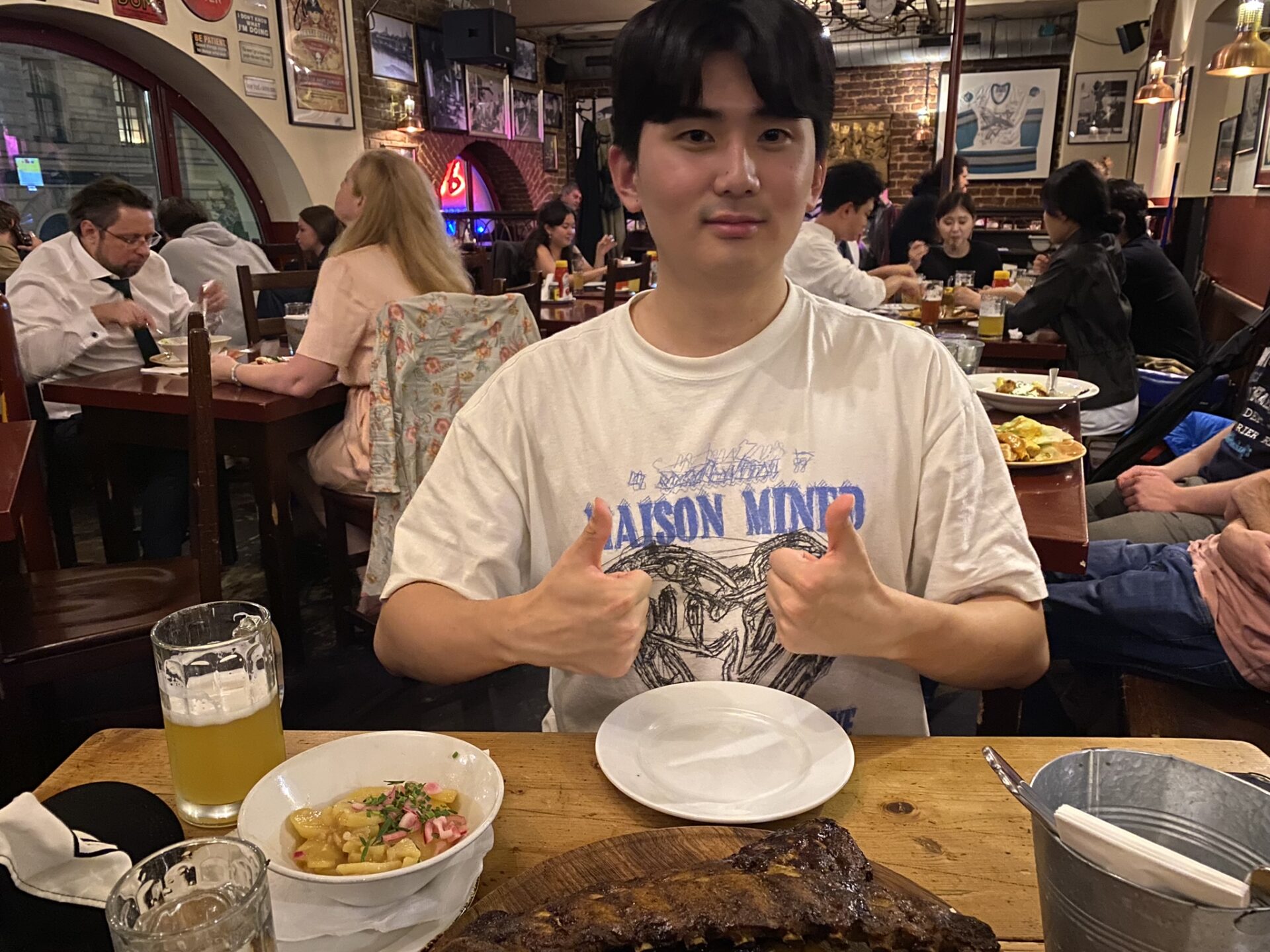 オペラの余韻を引きずりながら、韓国人の友人とともにディナーへ。向かったのはウィーン旧市街にある「1516 Brewing Company」。地元のクラフトビールとボリューム満点の料理が人気の店で、夜遅くでも賑わっていた。この時間やっている店が少なかったのでありがたかった。