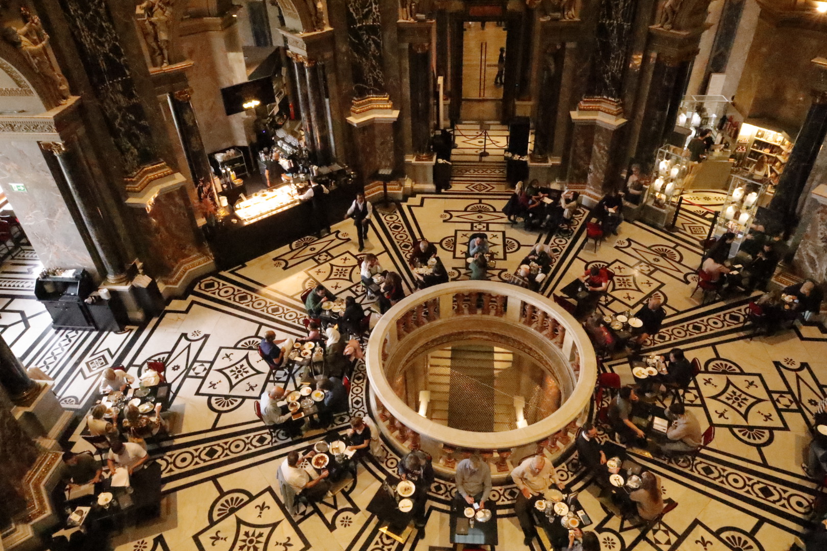 個人的にはブリューゲルの《バベルの塔》がやはり魅力的。中学の美術の授業で習ったアルチンボルドの作品も展示されていて、懐かしい気持ちになった。カフェは混雑していたため、上階から写真を撮っただけだったが、確かに美しかった。